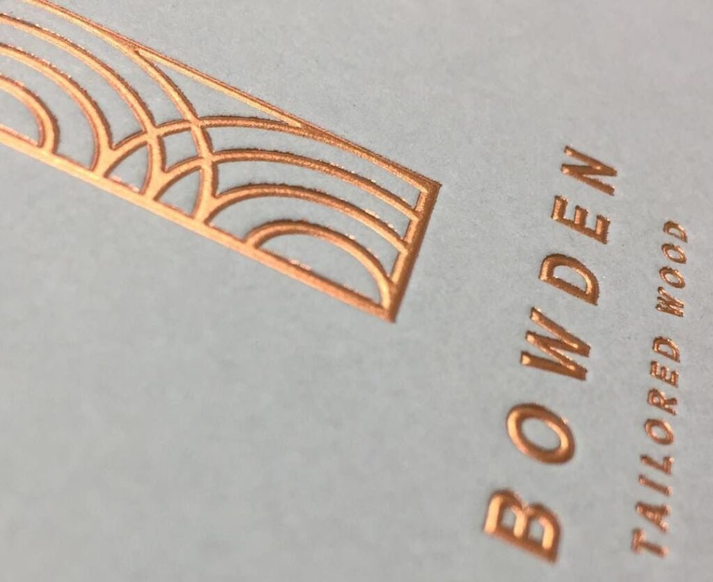 Foil stamping can be used with nearly any paper stock, though for the most precise result foils usually work best with smooth (untextured) paper or surfaces. There are near-endless uses for hot foil stamping on printed pieces. From business cards, brochures, and presentation folders to greeting cards, notecards, or invitations—almost any project can be enhanced with a little shine. And not just papers; our clients also use foil on folding cartons, flexible packaging, product labels, event posters, and more!